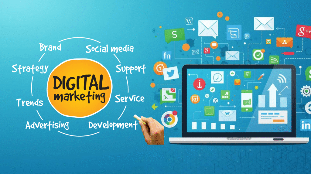 نحن ندعمك في إعداد استراتيجية تسويق رقمية شاملة لجذب المزيد من العملاء وتطوير تواجدك عبر الإنترنت. نحن نعمل على تحسين ظهورك وإدارة شبكات التواصل الاجتماعي الخاصة بك وإنشاء حملات إعلانية وتحسين صورة علامتك التجارية. تم تصميم كل إجراء لتوليد نتائج قابلة للقياس ومستدامة.